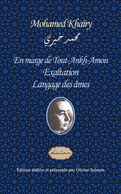 Ce volume rassemble En marge de Tout-Ankh-Amon, Exaltation et Langage des âmes. De ces poèmes variés ressort l’idée d’une «fraternité des esprits », une communion universelle au moment où se meurt le jour : la nuit, espace du rêve et de l’imagination, abolit la frontière entre le monde des vivants et celui des morts ; les mânes inspirent et réconfortent l’âme du poète, en lui offrant des visions merveilleuses et extatiques, que Mohamed Khaïry retranscrit dans une syntaxe souple et un style volontairement mystérieux, « mais qui réserve un sens plus riche à qui prend la peine de l’examiner avec attention ». | |||||||||||||
